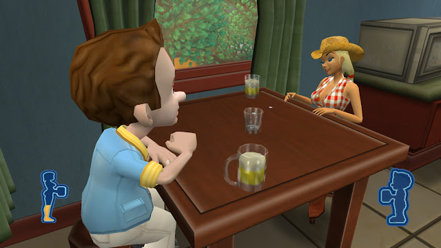 The next step is another minigame. This can be a game of quarter toss, trampoline jumping, streaking, collecting a set number of items, bartending or slaps. Win the game, which leads into the next phase, which usually is more talking and perhaps followed by another minigame, then maybe a bit more talking and finally score, or something in the realm of failure. Usually failure.
